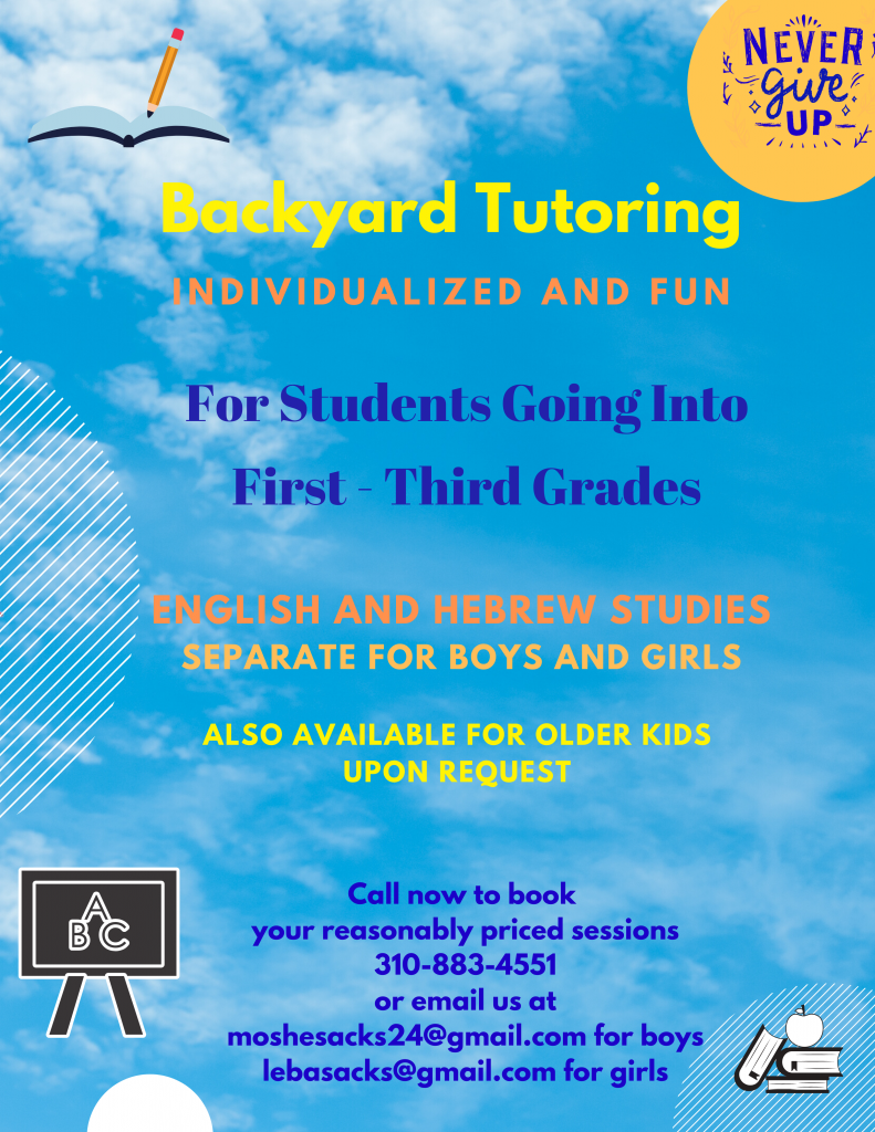 Backyard Tutoring Hebrew & English for students going into 1st – 3rd grades