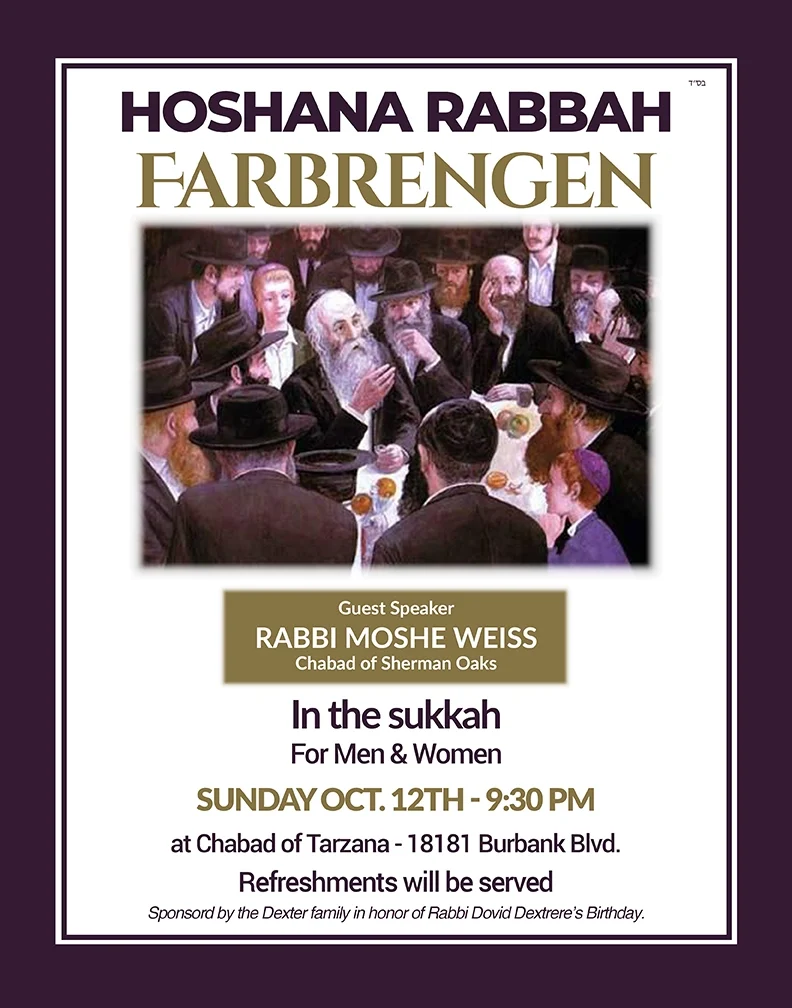 HOSHANA RABBAH FARBRENGEN with Rabbi Moshe Weiss at Chabad of Tarzana